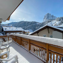 The bedroom also has a balcony with a view of the World Cup slope "Saslong".